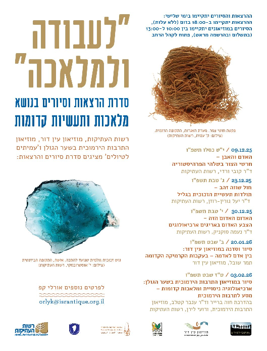 "לעבודה ולמלאכה" – סדרת הרצאות וסיורים בנושא מלאכות ותעשיות קדומות